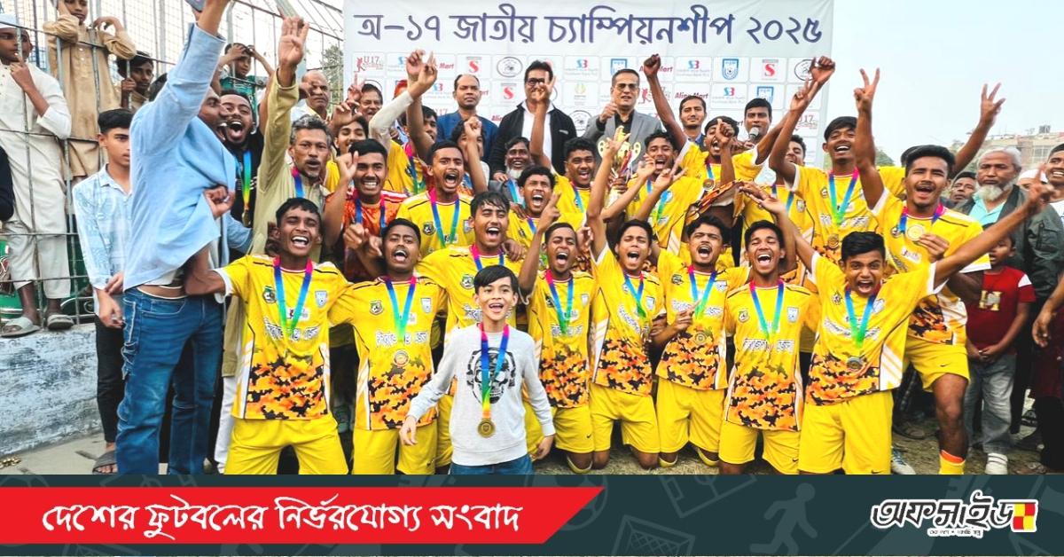নিজের মাঠে দর্শকদের সামনে দুর্দান্ত পারফরম্যান্সে অনূর্ধ্ব-১৭ জাতীয় চ্যাম্পিয়নশিপে পদ্মা জোনের শিরোপা জিতে নিয়েছে সিরাজগঞ্জ অনূর্ধ্ব-১৭ জেলা দল।