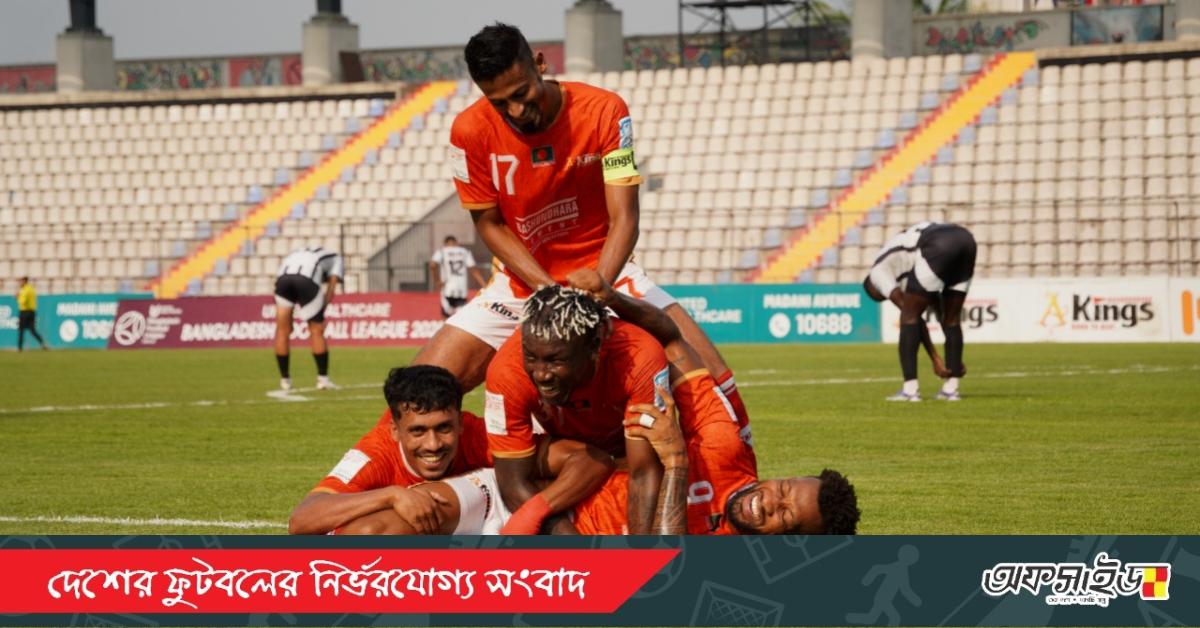 কিংস অ্যারেনায় শুরু থেকেই আক্রমণে ঝড় তোলে স্বাগতিকরা। দোরিয়েলতন গোমেস নাসিমেন্তো ও রাকিব হোসেনদের সমন্বিত আক্রমণে ২৪তম মিনিটে এগিয়ে যায় তারা। রাকিবের কাটব্যাক থেকে দোরিয়েলতনের নিখুঁত শটে জালে বল জড়ায়।