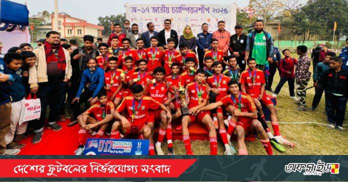 অনূর্ধ্ব-১৭ জাতীয় চ্যাম্পিয়নশিপের জোনাল ফাইনাল নির্ধারিত সময় শেষ হয় ১-১ গোলে।এরপর টাইব্রেকারে ৫-৪ ব্যবধানে ঢাকা জেলা দলকে পরাজিত করে চ্যাম্পিয়ন হয় রাজবাড়ী।
