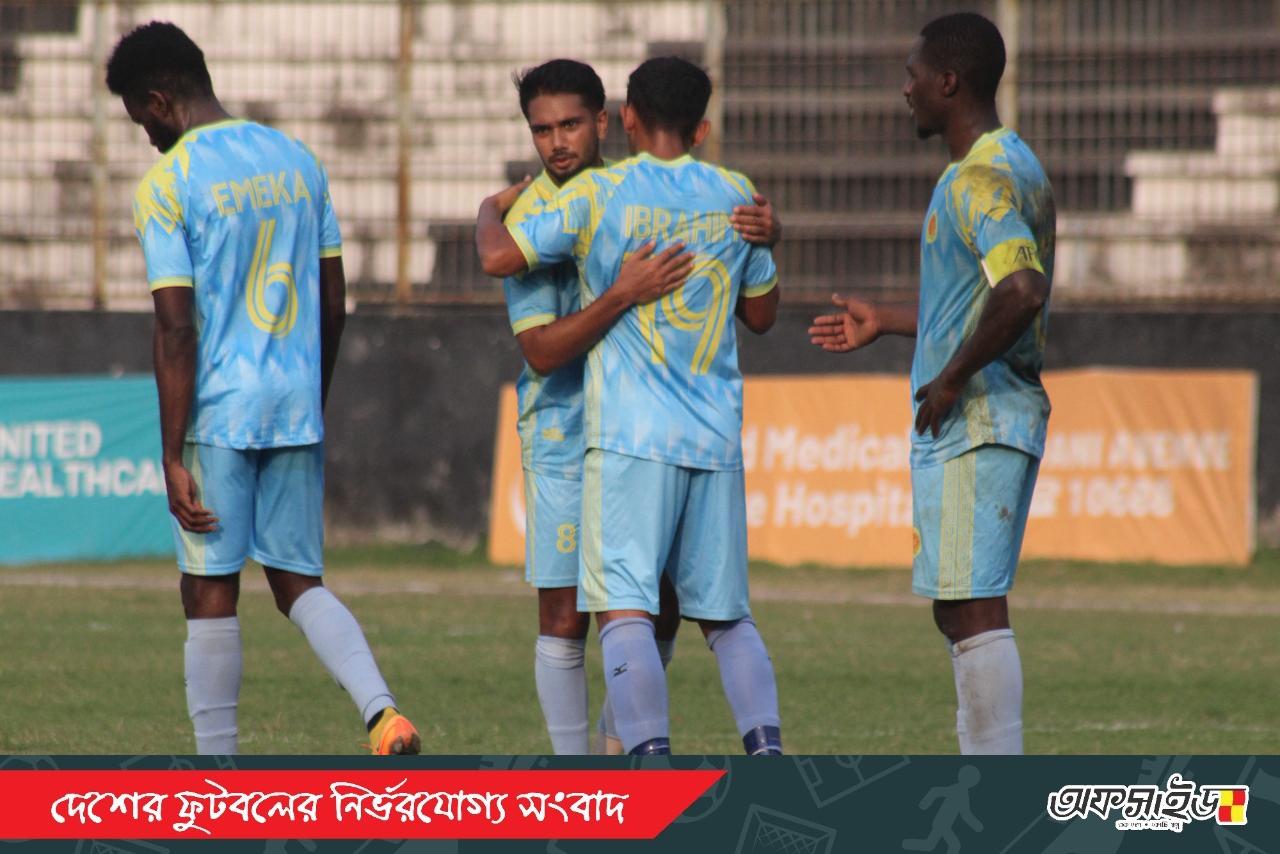আবাহনীর হয়ে জোড়া গোল করেন ব্রুনো মাতোস। ম্যাচের ২১ মিনিটে পেনাল্টি থেকে দলকে এগিয়ে দেন তিনি। আট মিনিট পর ব্যবধান দ্বিগুণ করেন এমেকা ওগবুগ।