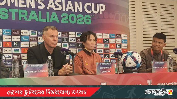 সিডনির কমনওয়েলথ ব্যাংক স্টেডিয়ামের বড়সড় সংবাদ সম্মেলন কক্ষে জয়ী দলের উপস্থিতি থাকলেও চীনের কোচের মুখে ছিল না স্বস্তির ছাপ। নারী এশিয়ান কাপের বর্তমান চ্যাম্পিয়ন চায়না নারী ফুটবল দল বাংলাদেশকে ২-০ গোলে হারিয়েছে ঠিকই, তবে ম্যাচটা মোটেও সহজ ছিল না। ম্যাচসেরা খেলোয়াড়কে পাশে নিয়ে সংবাদ সম্মেলনে আসেন কোচ আন্তে মিলিচিচ, কিন্তু কথাবার্তায় স্পষ্ট ছিল আরও ভালো কিছু প্রত্যাশা করেছিলেন তিনি।
