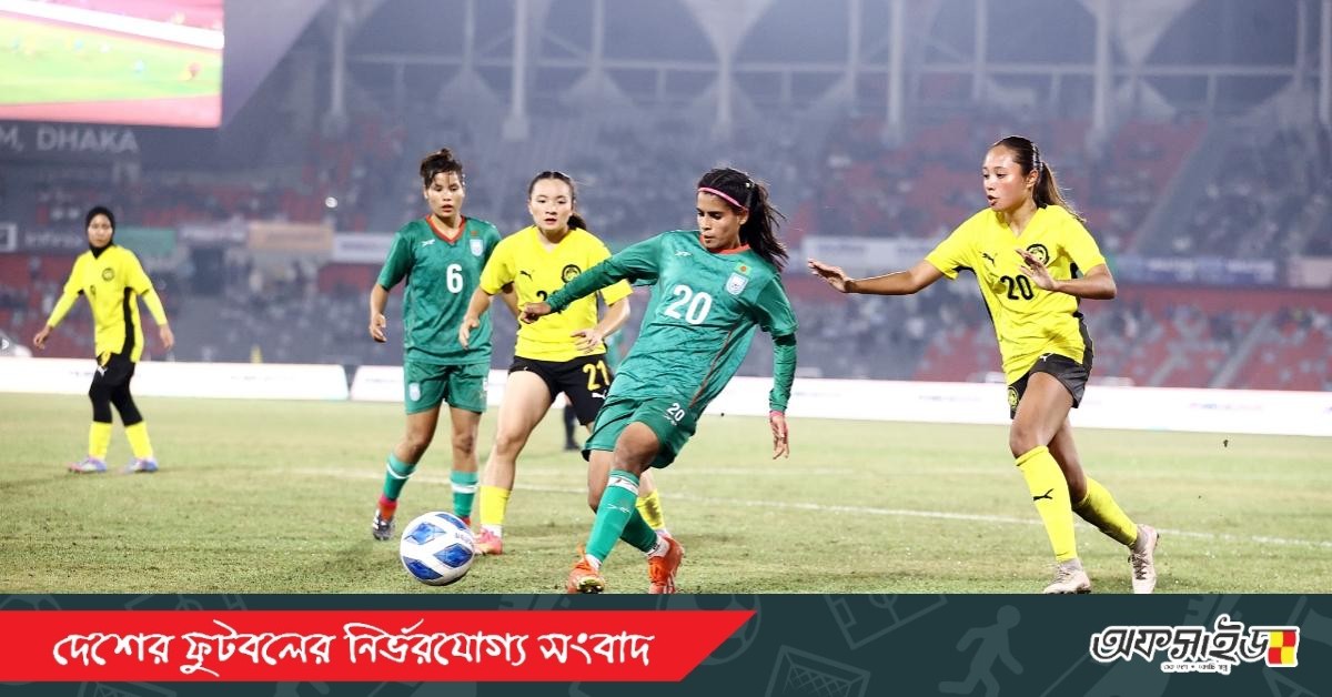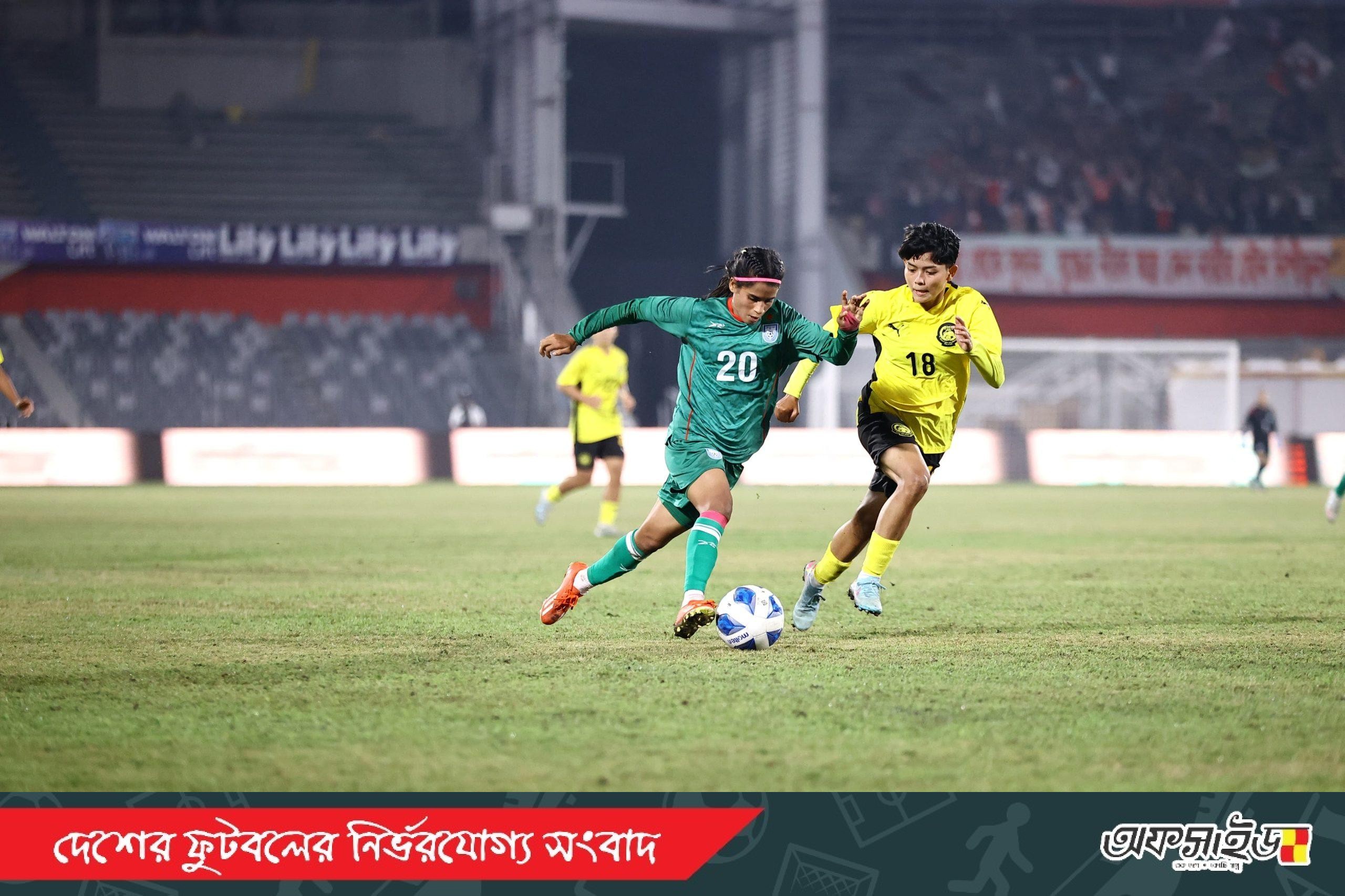 ঢাকার জাতীয় স্টেডিয়ামে ত্রিদেশীয় নারী ফুটবল সিরিজের উদ্বোধনী ম্যাচে আশাব্যঞ্জক শুরু করেও কাঙ্ক্ষিত ফল পায়নি বাংলাদেশ। মালয়েশিয়াকে শুরু থেকে চাপে রাখলেও এক ভুল বোঝাবুঝির সুযোগে হজম করা গোলই শেষ পর্যন্ত প্রথমার্ধের ভাগ্য নির্ধারণ করে দেয়। সফরকারীরা বিরতিতে যায় ১-০ ব্যবধানে এগিয়ে, আর গোল শোধ করতে না পেরে পিছিয়ে থেকে মাঠ ছাড়ে লাল-সবুজ দল।