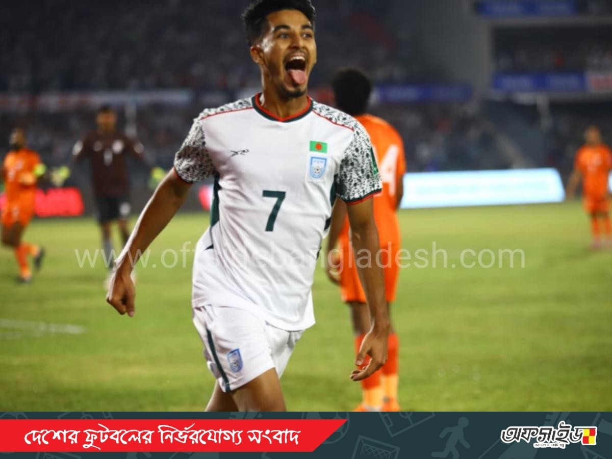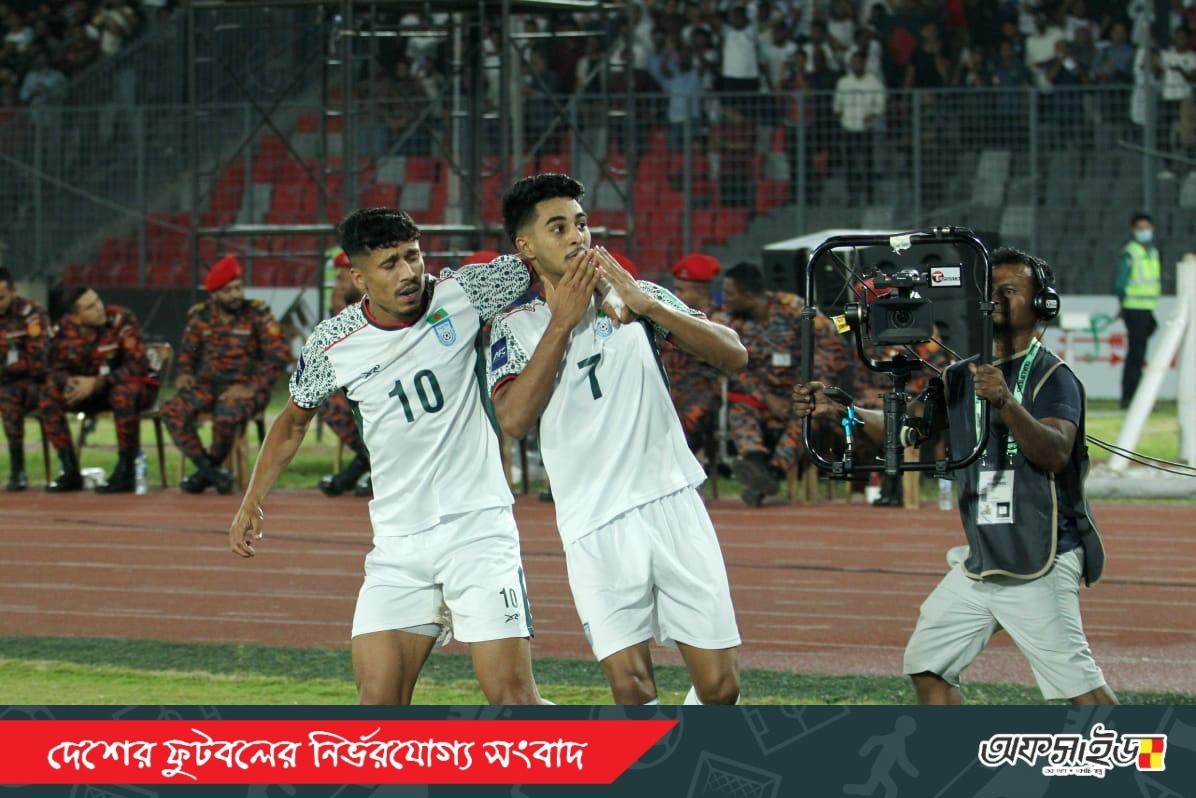 ম্যাচের ১২ মিনিটে পুরো স্টেডিয়াম যেন আগুন হয়ে ওঠে। দারুণ এক কাউন্টার অ্যাটাকে মোরসালিন ও রাকিব হাসানের দ্রুত বল আদান-প্রদানে ভারতীয় ডিফেন্স ছিন্নভিন্ন হয়ে যায়। রাকিবের বাড়ানো বল ধরে এগিয়ে গিয়ে ভারতের গোলরক্ষক গুরপ্রীত সিং-এর পায়ের ফাঁক দিয়ে বুদ্ধিদীপ্ত প্লেসিং শটে গোল করেন মোরসালিন। গোলের সঙ্গে সঙ্গেই ডাগআউট ও গ্যালারিতে উচ্ছ্বাসের বিস্ফোরণ।