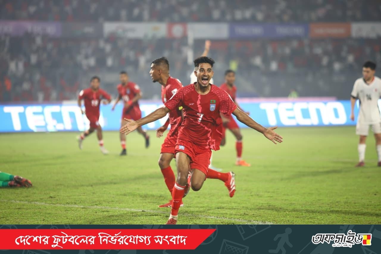 প্রথমার্ধের যোগ করা সময়েই সমতায় ফেরে অতিথিরা। কর্নার থেকে ফিরে আসা বল বক্সের সামনে পেয়ে আলতো টোকায় গোল করেন এভারটন — যেখানে বাংলাদেশ গোলরক্ষক মিতুল মারমা ছিলেন অসহায়।