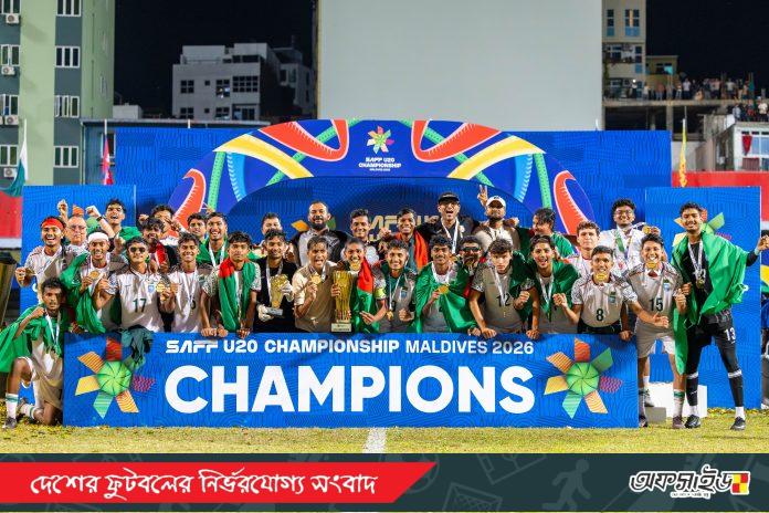 সাফ অনূর্ধ্ব-২০ চ্যাম্পিয়নশিপে শিরোপা জয়ের গৌরব নিয়ে দেশে ফিরছে বাংলাদেশ অনূর্ধ্ব-২০ জাতীয় ফুটবল দল। এই ঐতিহাসিক সাফল্য উদযাপনে দলটিকে বরণ করে নিতে বিশেষ আয়োজন করেছে বাংলাদেশ ফুটবল ফেডারেশন।